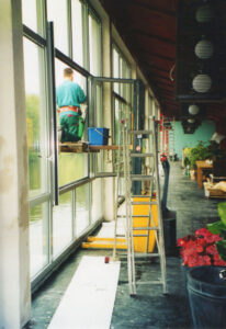 Die Glasreinigung bieten wir immer mit Ecken und Kanten an. Ob Eloxal, Kunststoff oder Holz, der Rahmen mit Fensterbänken und Fensterblechen gehören mit dazu.